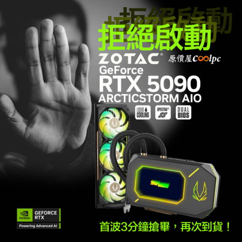【已截止】【原價屋搶購】抱歉!來的晚但誠意滿滿 ZOTAC RTX 5090 ARCTICSTORM AIO 上市首購!