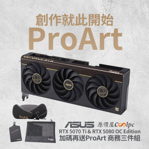 創作就此開始!華碩 ProArt GeForce RTX 5070Ti/5080 顯卡上市!