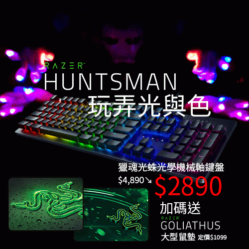 只愛玩弄光與色!Razer Huntsman 獵魂光蛛機械光軸鍵盤殺殺殺!