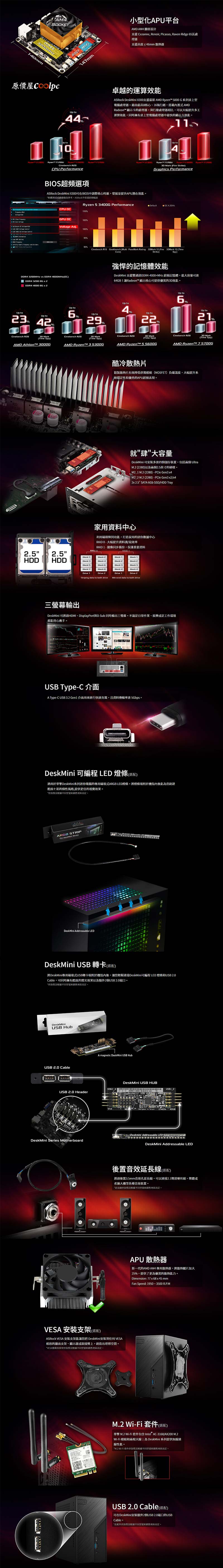 ASRock DeskMini X300是AMD平台,支援目前主流的AMD Ryzen 5000-G/4000-G系列桌上型CPU(看完整支援列表),等於有強勁的處理器效能加上VEGA內顯加持,配備兩個SO-DIMM DDR4記憶體插槽(Max 64GB)、兩個Ultra M.2 (2280)插槽、兩個2.5吋硬碟擴充空間,看你想怎麼配都可以,另外你還可以視情況加裝WiFi/藍牙無線模組、USB擴充埠、VESA安裝支架,甚至是ARGB燈條等,變化性也完全不輸桌上型電腦,真不愧是全球賣得最好的DIY小主機!前些日子一度賣到缺貨…,等了好久終於又再到貨啦!特別的是這次到原價屋買ASRock X300小主機,只要任搭CPU買就送AX210 WiFi 6E+BT5.2無線網卡,現賺$1150元還讓你高速飆網不受「線」制!活動數量有限,敬請把握。