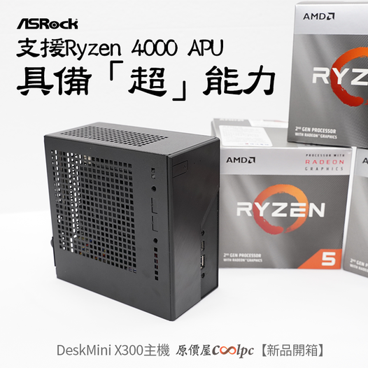 @2020/09/08 ,22:08能有輕巧體積又能自行DIY的小主機非Asrock DeskMini系列莫屬了!今天帶來DeskMini AMD AM4腳位專屬X300主機,除了支援AMD Ryzen 4000 APU 65W處理器之外,還有超頻的功能可以解放APU的效能!記憶體支援雙通道DDR4 SO-DIMM 3200MHz 64GB容量、雙Ultra M.2和2個 2.5吋 SATA3 6Gb/s硬碟擴充,並支援RAID 0/1磁碟陣列技術,滿足一般應用需求,提供HDMI、DisplayPort、D-Sub三介面同時顯示能夠提升多工處理效率,輸出I/O總共有1個USB 2.0、2個USB 3.2 Gen1 Type-A、1個USB 3.2 Gen1 Type-C介面以及AUDIO、Gigabit LAN網路孔,加上還可以擴充USB 2.0、VESA支架以及無線網路+藍芽模組M.2套件來安裝,整體來說不論是體積、效能、擴充性都近乎完美!通吃文書、影音以及遊戲需求了,已經沒有好挑剔的了,接著讓我們一起來看看它的開箱吧。