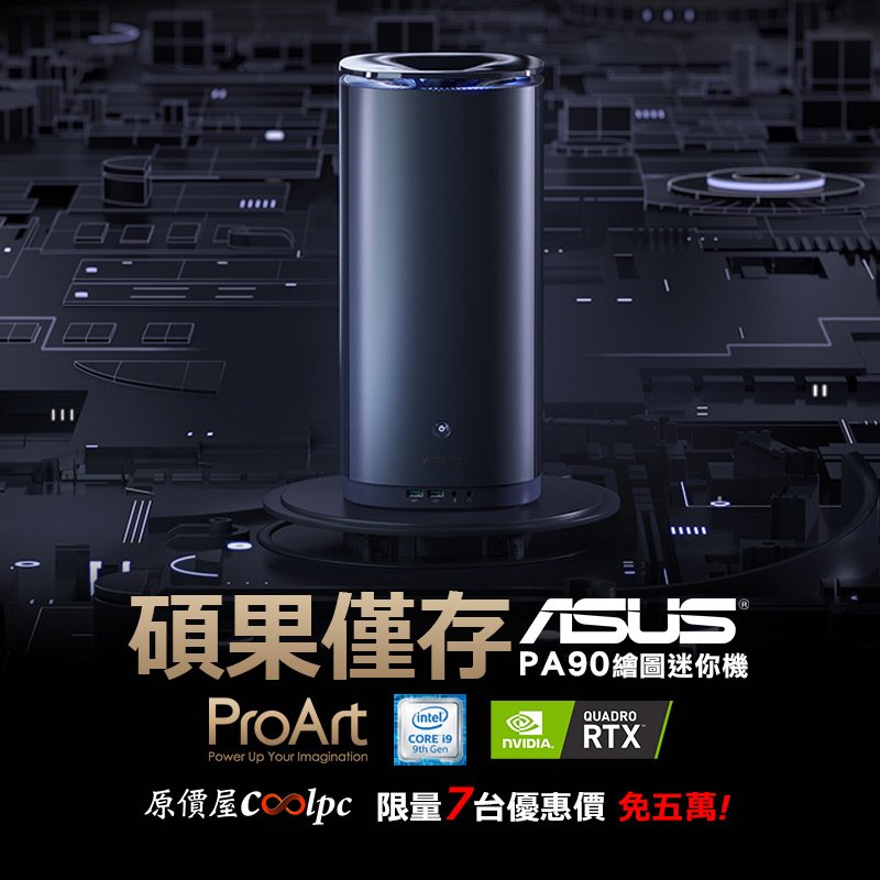 華碩的ProArt PA90-99K9PQQ迷你小主機,採用intel i9-9900K 8核/16緒處理器、32GB DDR4 2666MHz記憶體、512G PCIe M.2 SSD以及NVIDIA Quadro P4000 8GB繪圖卡,整體規格足以滿足專業領域所需,機身體積也僅有176 x 176 x 365 mm的大小,內部甚至特別裝了一組120mm CPU一體式水冷散熱系統,能提供保滿載時的有效散熱,讓運作更加穩定。另外I/O介面也有2個Thunderbolt 3、4個DisplayPort 1.4、4個USB3.1 Gen2 Type-A、Gigabite LAN、Wi-Fi 5(802.11ac)+藍芽5.0豐富擴充,還配上一套正版的Windows 10 Pro作業系統,當然也有原廠三年到府收送服務,有興趣的朋友真的不要錯過這次的限量活動,可透過原價屋線上估價系統下單詢問,或利用原價屋蝦皮商城購買喔!數量僅7台,售完為止!