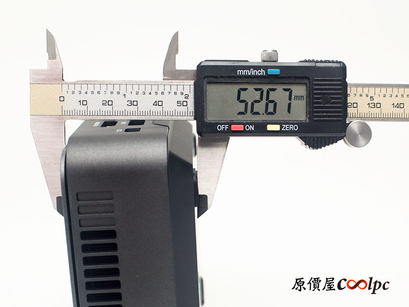 技嘉 BRIX Extreme 體型確實還是挺小的,測量機身大小約為 52 x 134.2 x 139.1mm,這比市面上 STX 主機來的更小,省電同時也是一種優勢。