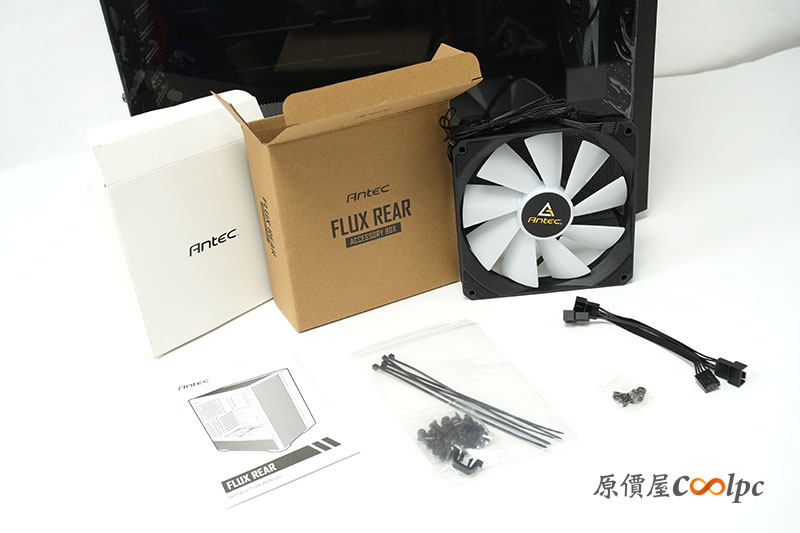 「Antec FLUX REAR」在底部也配置了 2 顆 120mm 的反葉片風扇,提供內部更好的散熱循環。