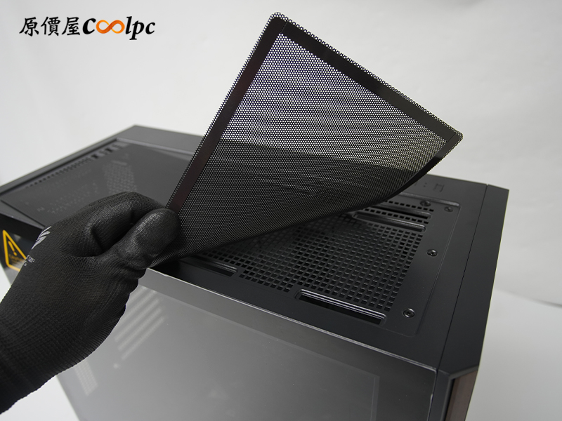電源艙外側同樣佈滿散熱網孔,引導冷空氣從機殼底部直接進入,為顯卡提供最直接的冷空氣。配合預裝的兩顆 120mm 反向風扇,能大幅提升顯示卡換氣效率。