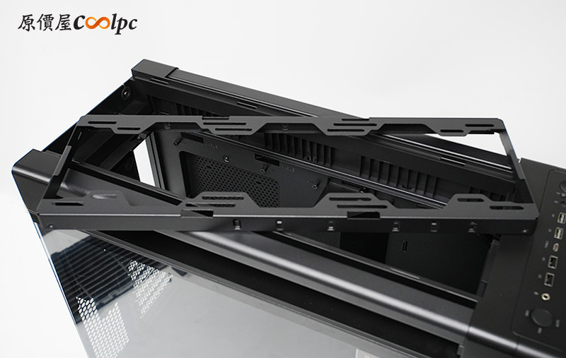 頂部風扇支架可以拆卸,安裝水冷與風扇更便利,這裡支援420/360/280/240mm規格水冷排,或是120/140mm風扇最多3顆。
