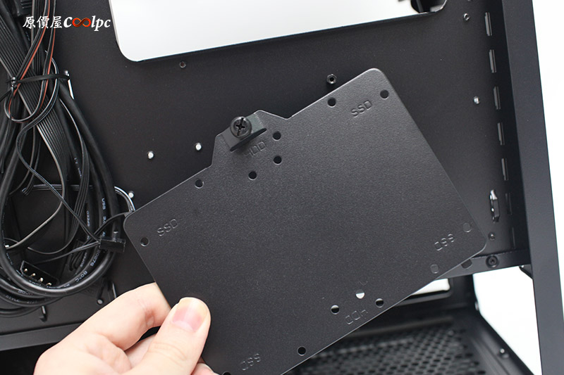 如果往前面板在靠一點,這麼一來電源艙的空間也會增加一些,玩家如果是安裝像是擁有水晶接頭,或是接頭較厚的電供,也會更有空間。而硬碟架也是可支援3.5″HDD或是2.5″SSD的設計。