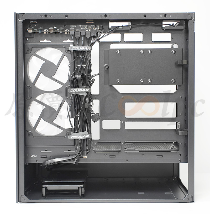 側邊內建一組UNITY 240 ARGB PWM風扇,這是COUGAR自家的一體式風扇,除了風扇的部分有ARGB燈光效果外,側邊框架還有ARGB流線,多方向增加觀賞性。
