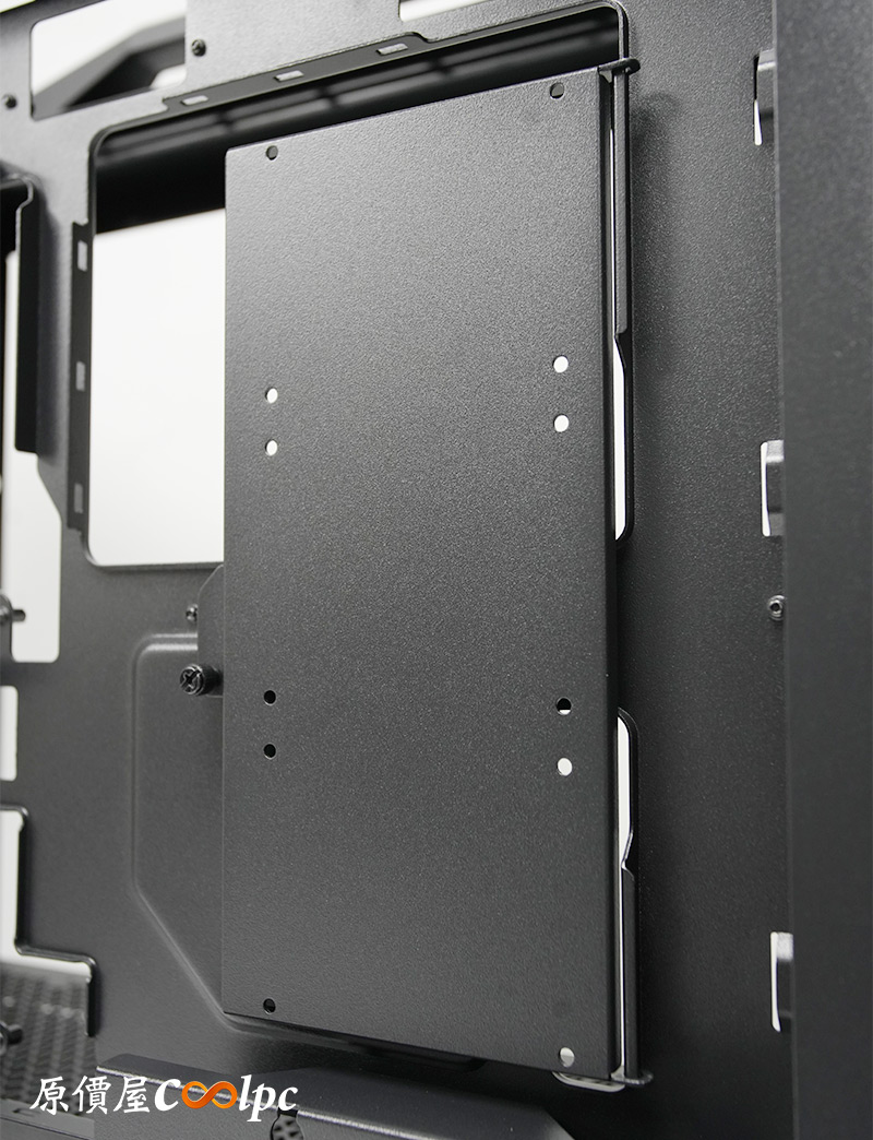 機殼內有一個理線板,位置可以透過後方螺絲移動固定,遮擋線材讓內部更簡潔美觀。