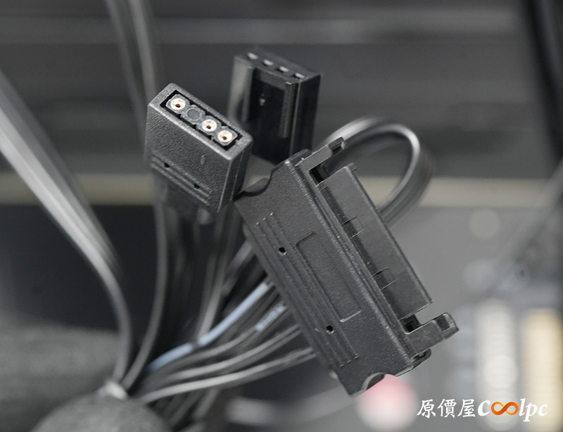 控制器最終拉出3Pin 5V RGB、小4Pin主線來連接主機板,並可利用主機板軟體控制風扇轉速與燈光效果,控制器本身也需要透過SATA電源供電喔!