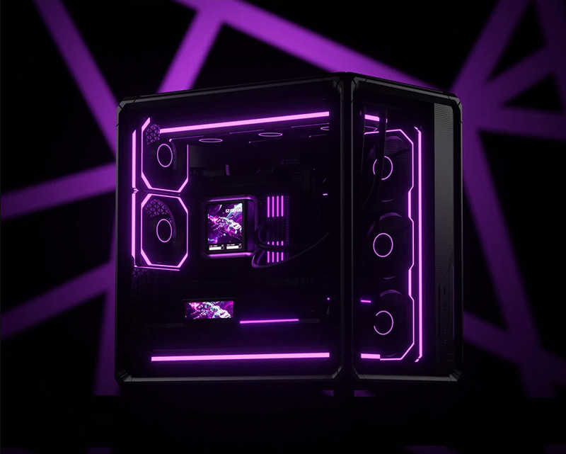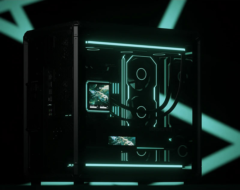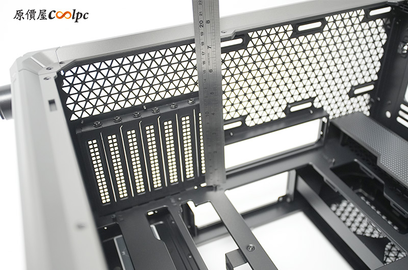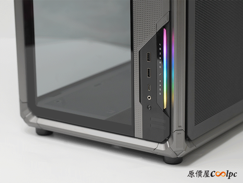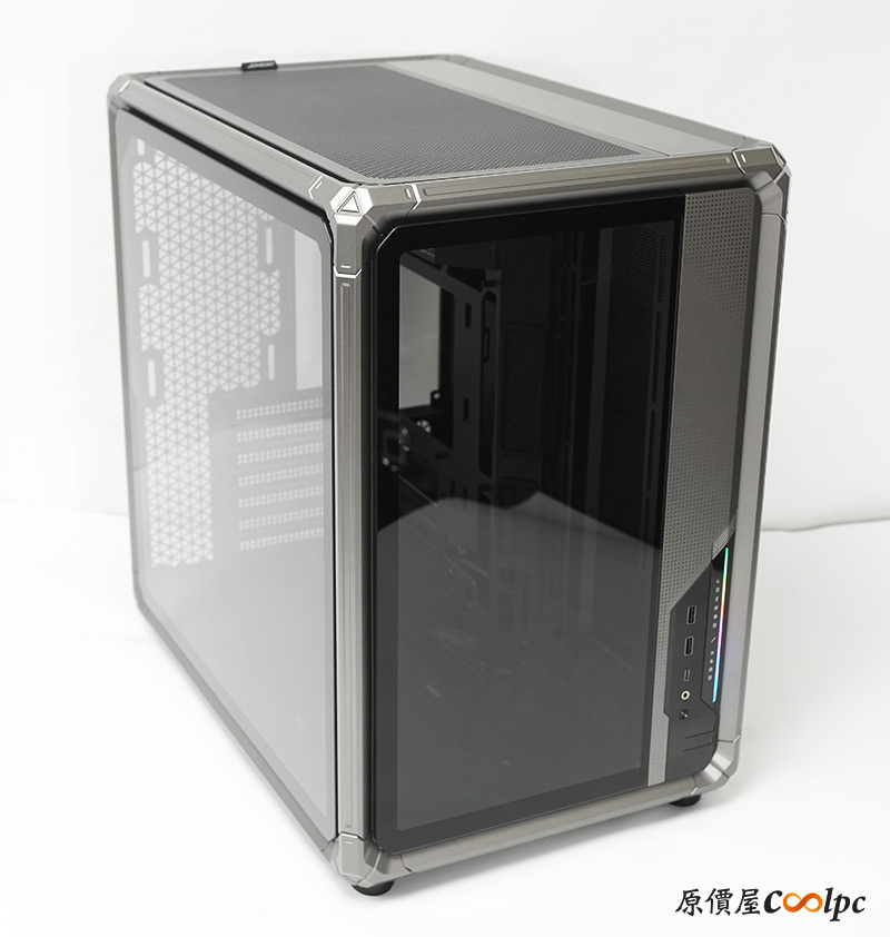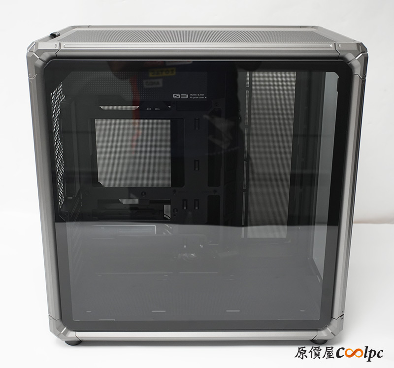 左側整面的強化玻璃能完整看透內部,右側則是採用透氣網孔面板,面積也是快要做到全覆蓋。