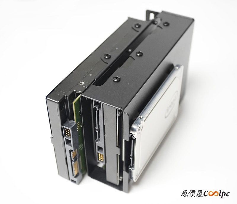 底部的硬碟架可以安裝2顆3.5″ HDD與1顆2.5″ SSD,儲存裝置的數量配置相對少。