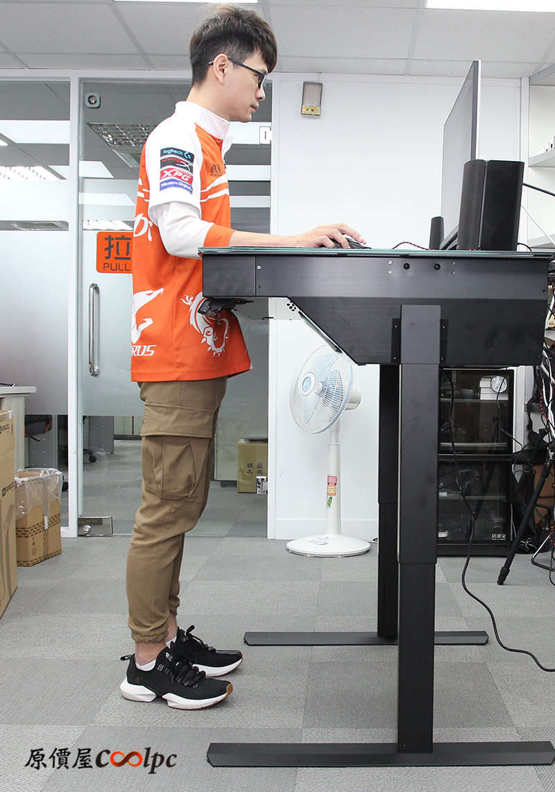 總算完工…,當你組裝完成,蓋上玻璃之後它就是一個升降桌啦!桌子可升降高度最低為689mm、最高為1175mm,桌面平台的長為1000mm、寬為750mm,不僅可以坐著打遊戲,亦可站著辦公,也因為可升降的優勢,可以適用於各個身高的用戶!
