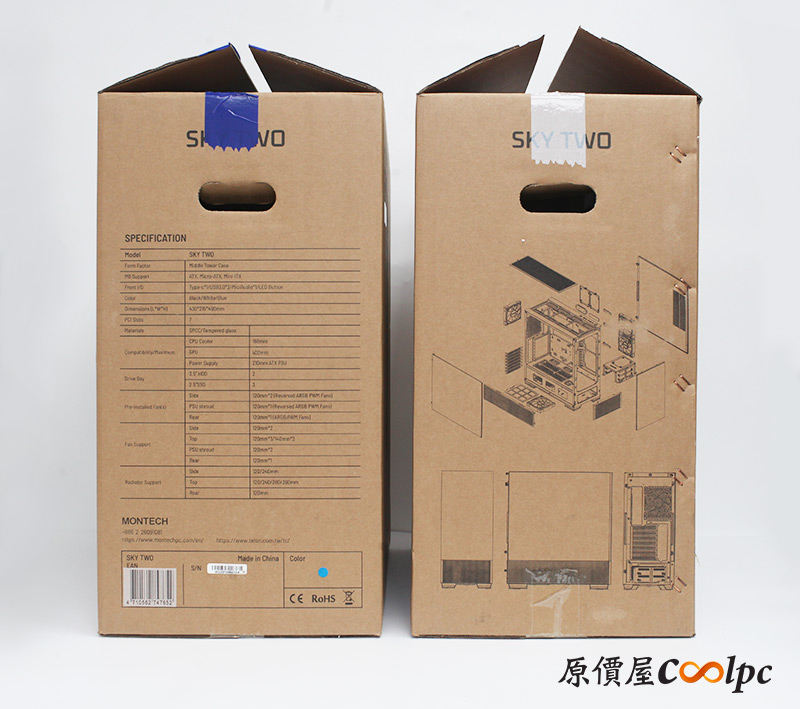 @2023/01/02 ,11:30新年快樂啦!新的一年不只有新氣象,還很適合組新電腦!因為明天剛好就是Intel 13代non-K處理器及Intel B760系列主板上市,換新平台也可以同時幫電腦換個新家,所以這回原價屋馬上就端出新機殼開箱讓大家參考啦!這款Montech SKY TWO天字二號房空間寬敞,歡迎各路大咖零件入住,它能夠放入長度40cm顯示卡,管你NVIDIA GeForce RTX4090還是AMD RX7900XTX通通來吧!水冷散熱器最大支援360mm,空冷散熱器高度也有16.8cm,市面上主流款式都吃得下。還有雙面大型玻璃窗可以看透屋內外景緻,並且配備4顆12cm A.RGB風扇,燈光美氣氛都比別人家好!作為Montech高階電競系列第二代,SKY TWO機殼也是貫徹美觀與實用結合的核心理念,與前作SKY ONE有著截然不同的設計,加入玻璃與底部通風鐵網面板,結合A.RGB反葉風扇,觀賞性與散熱性能同時兼顧,而且還能在頂部加裝風扇!內部能裝ATX規格主機板,儲存裝置有2x 3.5″ HDD/ 3x 2.5″硬碟,I/O提供USB3.2 Gen1 Type-A*2、USB3.2 Gen2 Type-C、3.5mm音源接口等,並內附燈光控制器、風扇hub。更特別的是這次不僅有傳統的黑、白兩色,還多了一款超有特色的摩洛哥藍,廠商也非常大氣直接把三個顏色都送來,讓玩家們可以一次看個夠,小編我還是別多囉嗦,趕緊帶大家一探究竟吧!