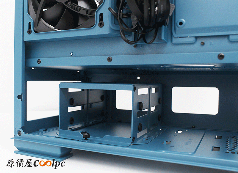 底部還有3.5″硬碟架卡槽,看來可以前後移動位置。