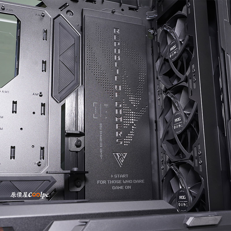 華碩ROG HYPERION GR701 創世神旗艦機殼,以新穎X造型姿態亮相,獨特X造型鋁合金手把採用高精度 CNC 銑削和陽極製程打造整體看起來更有質感!而且還能支撐高達80公斤的重量,實在有夠誇張的啦!還有添加了一塊ROG燈板在側面,讓內部燈效看起來更加豐富閃耀,甚至你要單獨使用也沒有問題!另外還有隱藏式的收納盒,可以放螺絲起子和螺絲等配件,機殼內部空間相較ROG Strix Helios還要更大了!光是風扇就能同時安裝10顆12/14公分風扇了(須拆側面燈板),水冷系統則是最大可安裝420mm尺寸,要裝開放式水冷也不是問題!支援E-ATX、ATX、M-ATX、Mini-ITX規格主機板,採用鷗翼式鋼化玻璃設計,前面板上下三角造型具備5V ARGB燈光效果,可透過硬體或主機板燈光同步技術,硬碟擴充的部分提供2個3.5吋和5個2.5吋插槽,加上主機板上的M.2也絕對夠你用了!還有內附兩條CPU延長線,解決電源供應器CPU線不夠長的問題,顯卡支撐架也更換成垂直和水平安裝兩用,當然也少不了顯卡垂直安裝的轉接架,就算是體積很大的RTX4090也能輕鬆應付!有興趣的朋友可以點選下方搶購表單,數量有限!想更了解機殼的話,底下還有詳細開箱介紹可以參考唷。