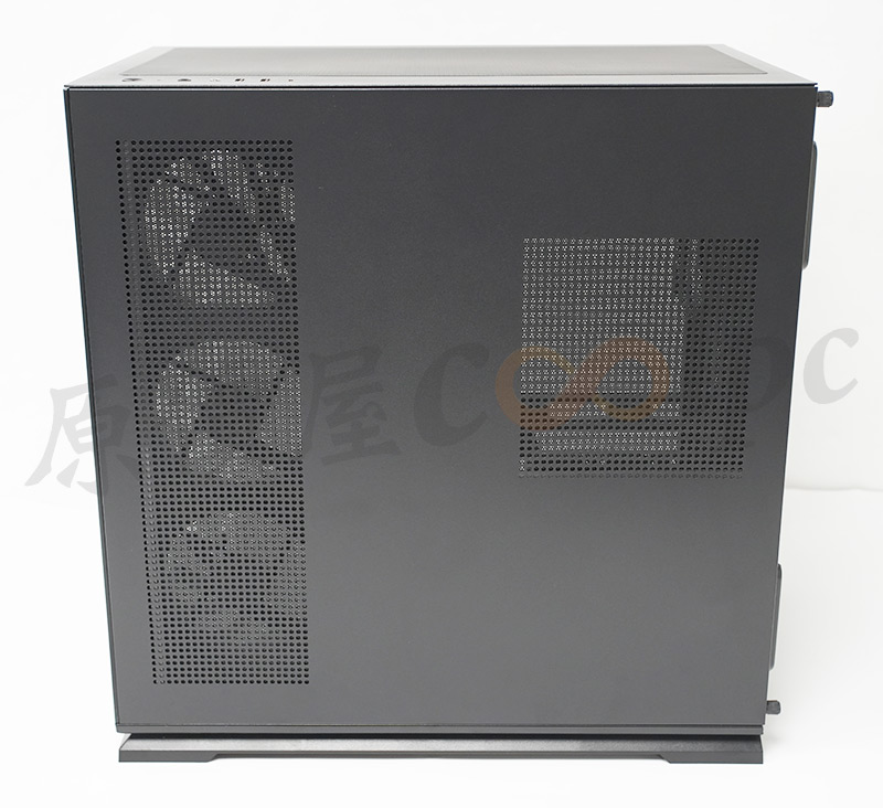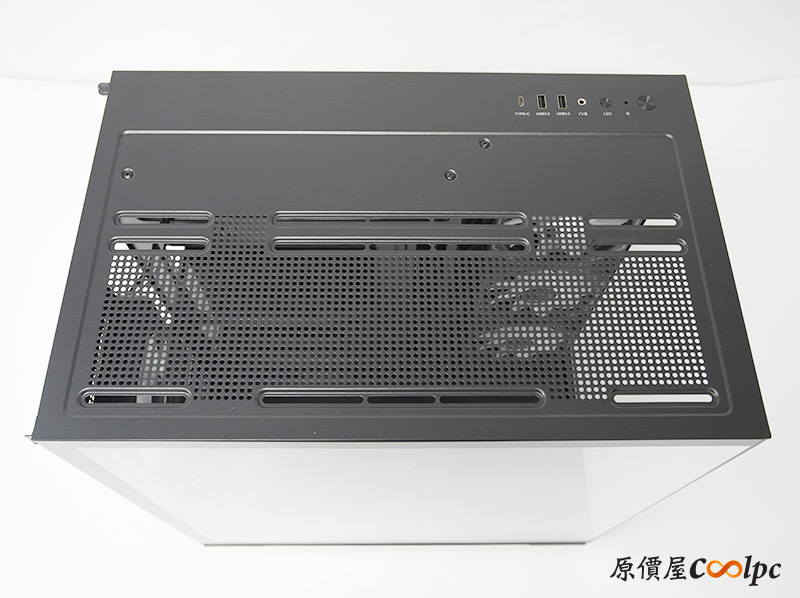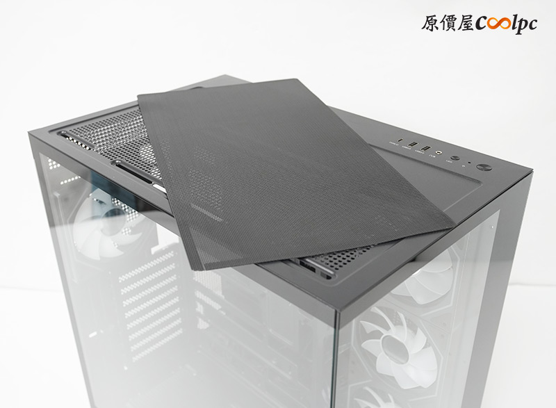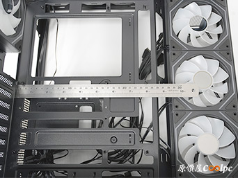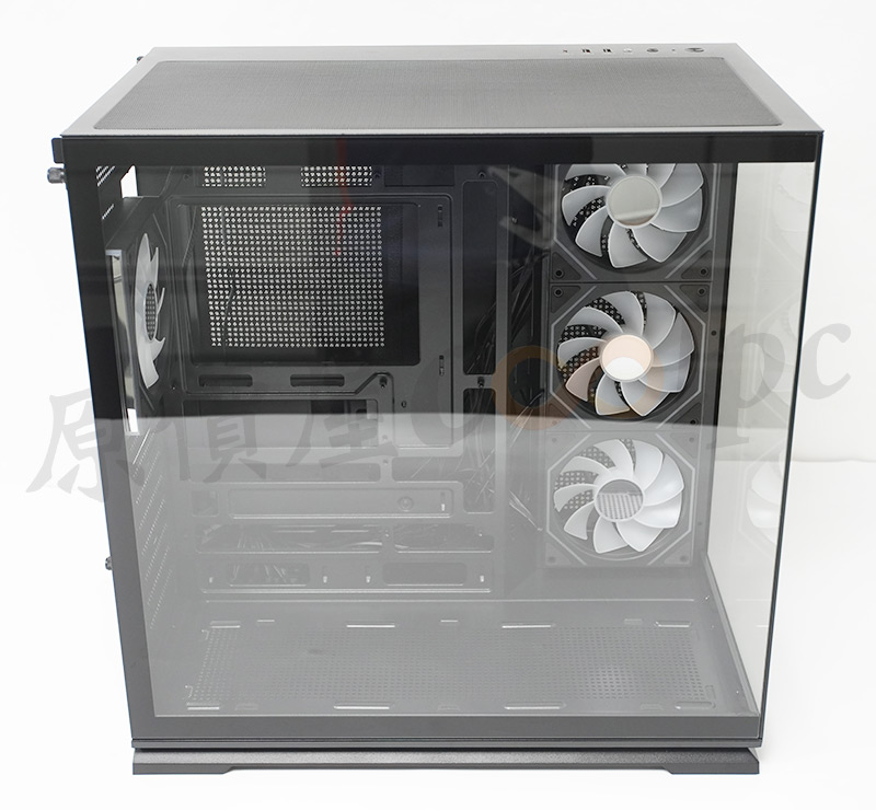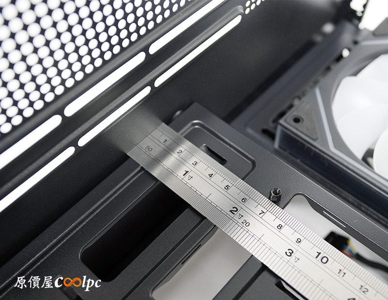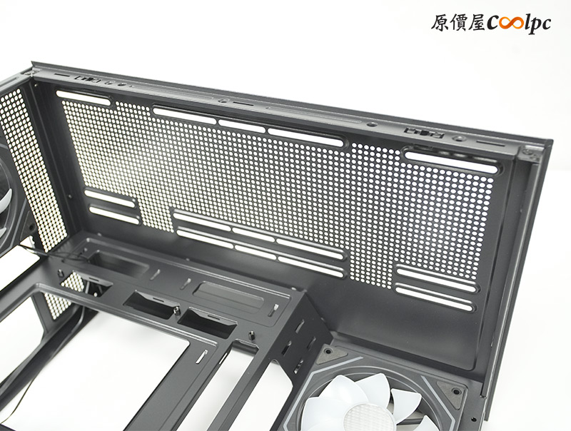 上方風扇支架明顯有向左側偏移,避免與主機板上的散熱模組衝突,這裡可以安裝3顆120mm或2顆140mm風扇。