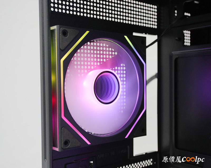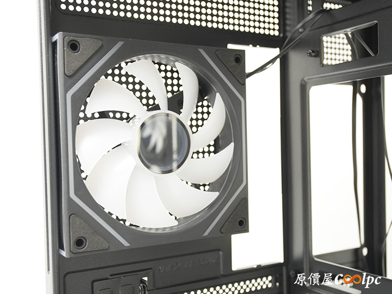 後方預裝1顆120mm ARGB風扇,這顆的風向就是正常的版本,造型方面則是和側風扇相同。