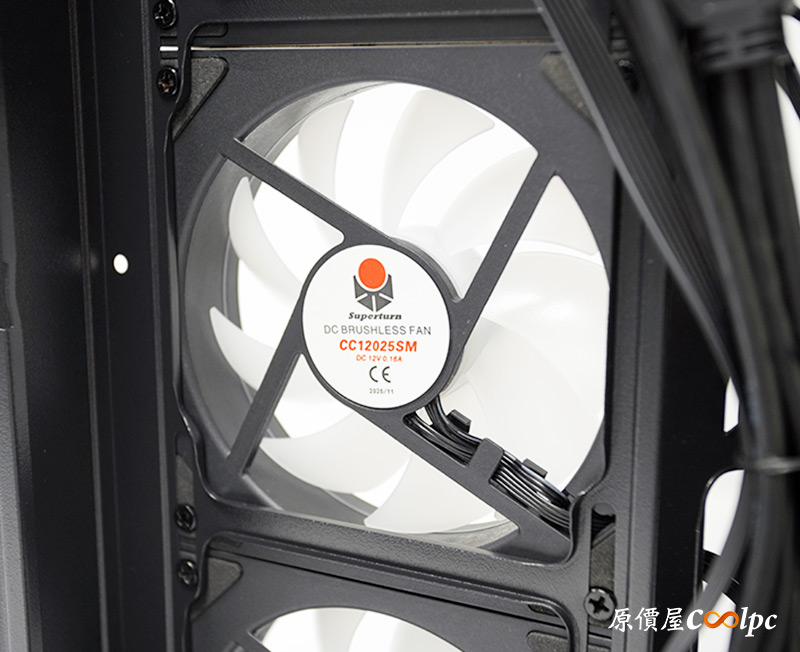 側風扇的型號可以從這看到,預裝了3顆視博通CC12025SM。