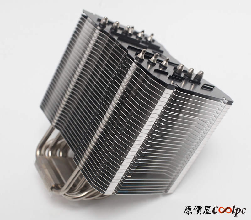 散熱器本體尺寸140*97*158mm,使用六導管與31片金屬鰭片快速傳導熱量,本身還有針對記憶體做傾斜設計,使得風扇更不容易與記憶體衝突,藉以提升整體相容性,這也讓散熱器沒辦法自行站立,所以在裝的時候要扶好別讓它摔跤了。
