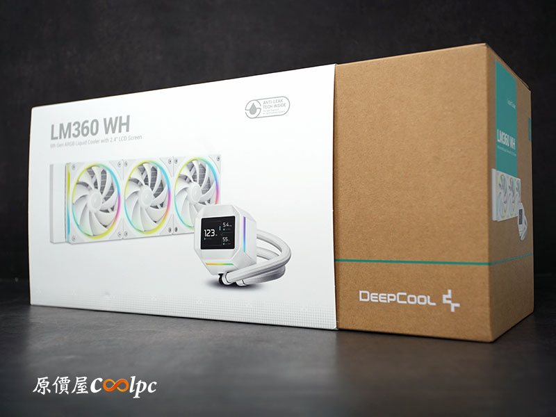 @2025/10/03 ,11:42剛剛裝水冷的時候你偷看了對吧?水冷發展從無光到白光,再來有 ARGB 幻彩燈光,現在又有 LCD 顯示器…花樣越來越多!九州風神在所有元素具備的情況下,還能做出 C/P 價值!這回原價屋帶來 DeepCool LM360 WH 一體式水冷散熱器,2.4 吋 IPS 顯示器冷頭搶盡鋒頭,支援硬體監控與自訂 JPEG/PNG 圖片或 GIF/MP4 影片!搭配預裝幻彩星環三風扇,一條線便可串接完成,且燈光支援各大廠燈光同步軟體,DIY 組裝方便又整潔!更特別的是獨特的動態平衡卸壓(Anti-Leak)技術,內部壓力透過閥門控制,有效降低漏液風險並延長壽命。可支援主流 Intel LGA 1851/1700/1200/1151/1150/1155 及 AMD AM5/AM4 平台,水冷本體 5 年保固,LCD 螢幕 3 年保固,DeepCool LM360 黑/白雙色兩款都賣 NT$3690,在 DIY 市場算滿有競爭力了。有興趣的朋友可往下參考 DeepCool LM360 WH(白) 水冷散熱器的開箱。