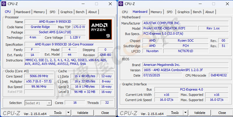 MB:華碩 ProArt X870E-CREATOR WIFI(BIOS Version:1605)