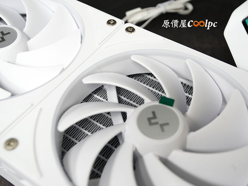 (點小圖放大)DeepCool LM360 WH 水冷散熱器顧名思義是 360mm 尺寸設計,冷排加入獨特動態平衡卸壓技術,降低漏液風險並延長壽命!預先安裝 3 顆 120mm 幻彩星環風扇(FL12 SE),質感除了全白設計之外,還有 ARGB 透光風扇 + 風扇中間的導光片,讓幻彩燈光魅力四射!此外風扇四邊角皆有防震軟墊,降低共振噪音。連接方式採用 8Pin 母孔整合 PWM 及 ARGB 訊號,DIY 更簡單!水冷管使用白色編織包覆,再加入兩條魔鬼氈束線,既美觀又耐用!