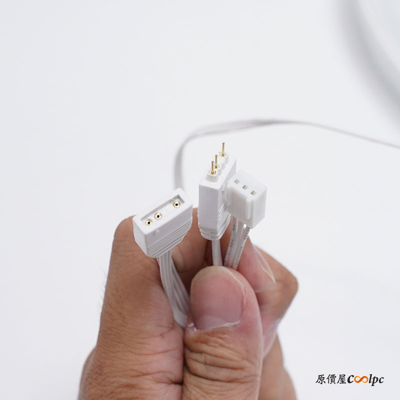 冷頭上的線材有ARGB公、母分接線,以及一條3pin供電線材。