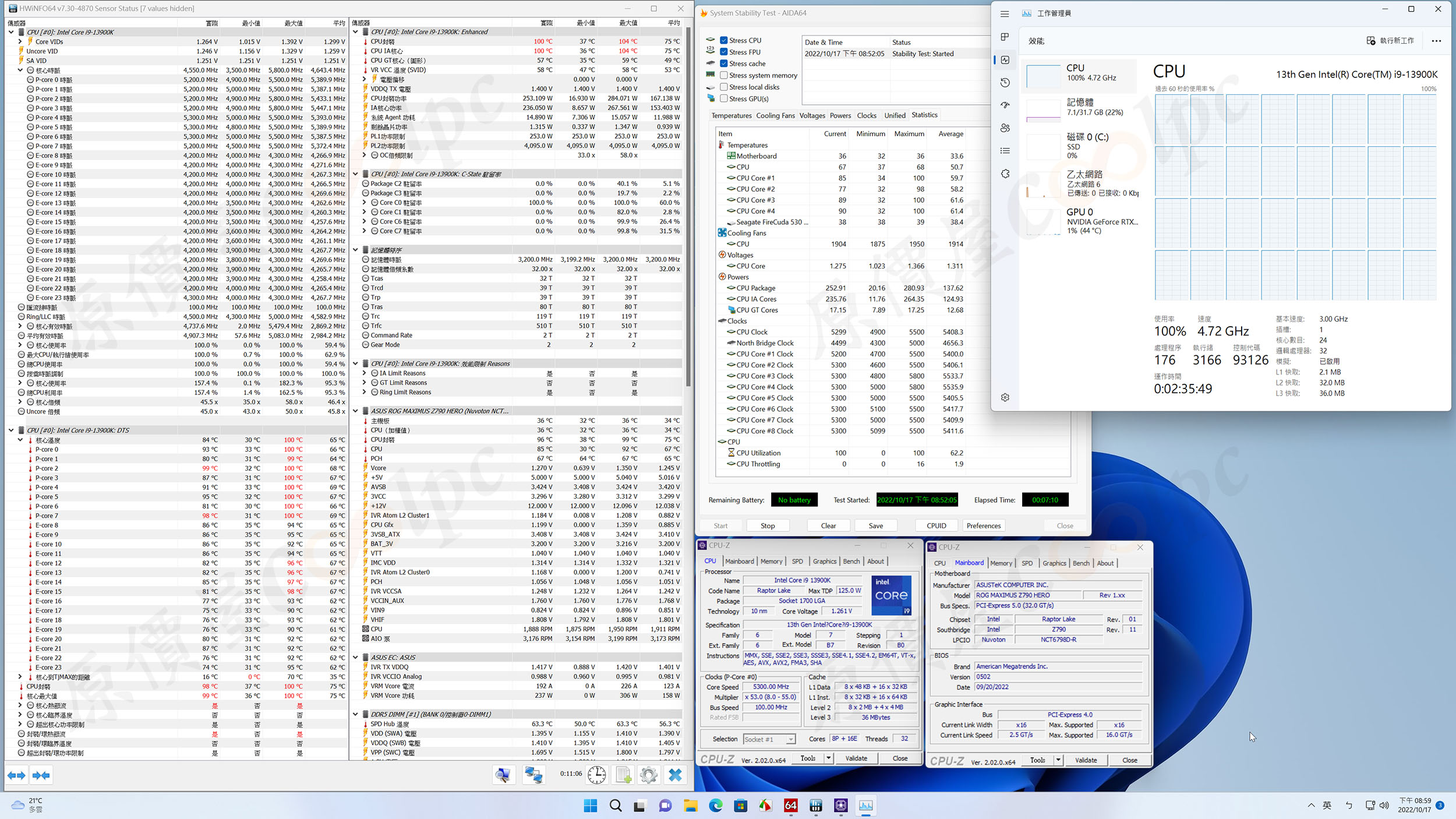 (點小圖看詳情)透過 AIDA64 System Stability 進行 CPU & FPU & cache 燒機測試溫度及功耗表現,i9-13900K 最高有飆到 284W,效能確實是強,但功耗及溫度的確也不低,若要 Intel 第 13 代效能完全發揮,有足夠的預算上 360mm 水冷就上吧!會影響效能甚麼的不能妥協!
