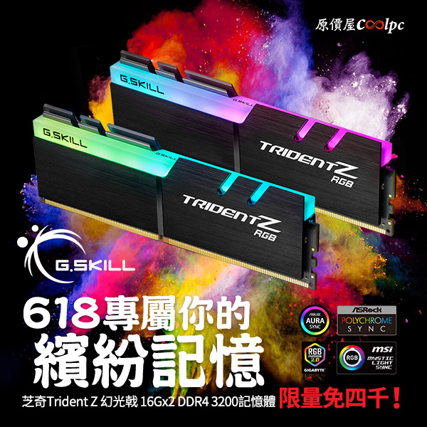 618專屬你的繽紛記憶!G.SKILL 幻光戟16Gx2 D4-3200超頻記憶體限量優惠!