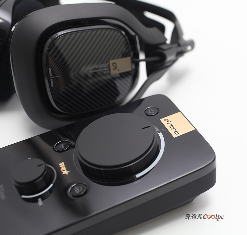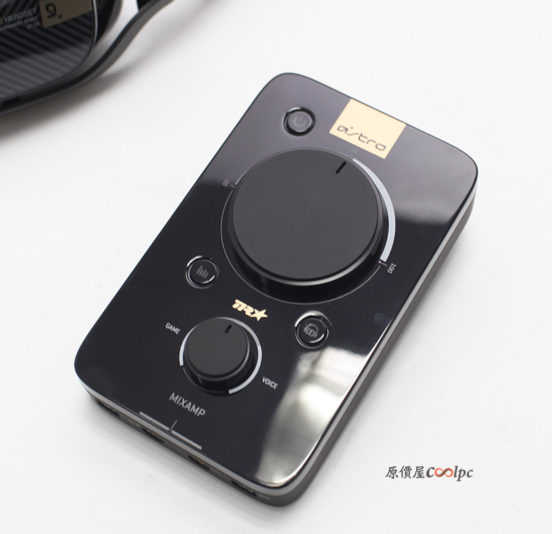 MixAmp™ Pro TR 單購的話要129.99鎂呢!(台灣似乎還沒提供零售) 正面包含最大的滾輪是音量調整、左邊小鍵是切換4組EQ (預設是Astro Mode、Natural Bass Mode自然低音模式、BalanceMode平衡模式、TournamentMode競技模式),可以在驅動軟體中新增均衡器調整,不過預設還滿實用的。右邊小鍵上有杜比標誌就很明顯是7.1環繞開/關。底下小滾輪鍵則是調整遊戲音與語音的大小聲。