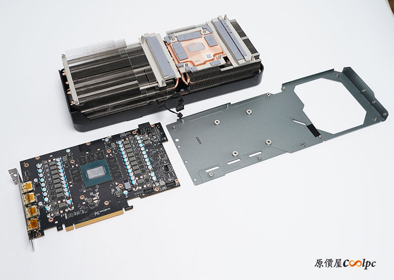 將GeForce RTX 4080脫光光!可以發現其實是張短卡,以ZOTAC GAMING 為例,它的長度23.3公分,因為超強效能的關係,所以散熱系統都會比PCB板還要大上許多,才能幫助晶片和主要零件來解熱,NVIDIA RTX 40這一代的晶片相較RTX 30系列有變小顆了。
