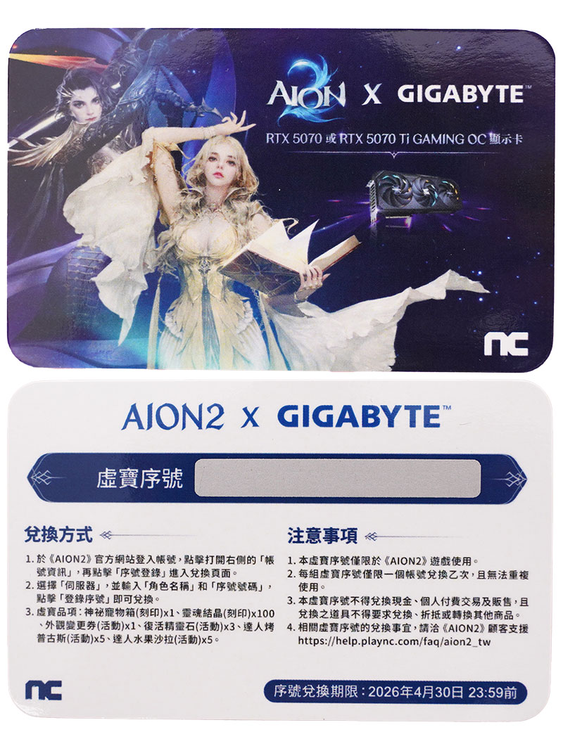 技嘉幫你課金!RTX 5070/5070TI GAMING OC 限量送 《AION2 》遊戲虛擬寶物!