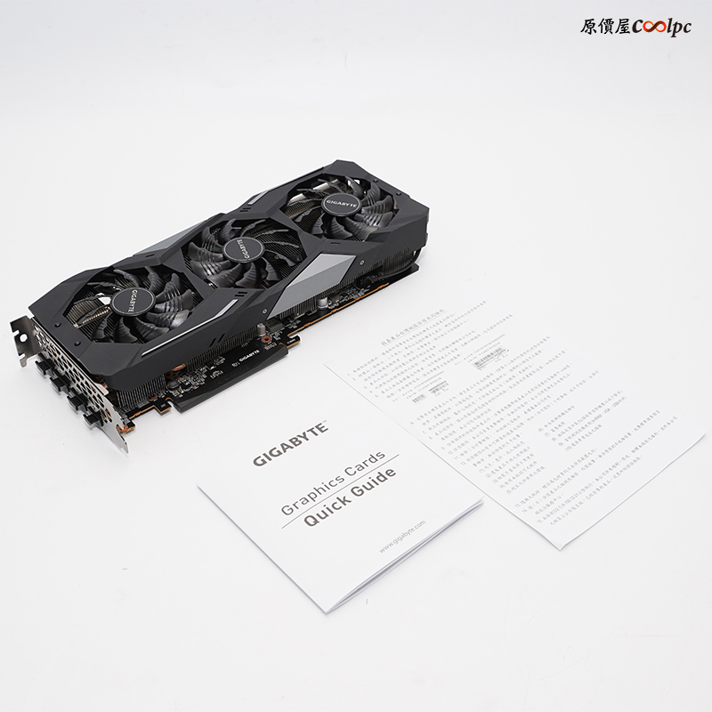 由於外盒設計和RX5700XT GAMING OC 8GB相同,這邊就快速的帶過外盒介紹囉!取出外盒後可以看到技嘉RX 5700 GAMING OC 8GB本體、快速安裝手冊、保固卡資訊。