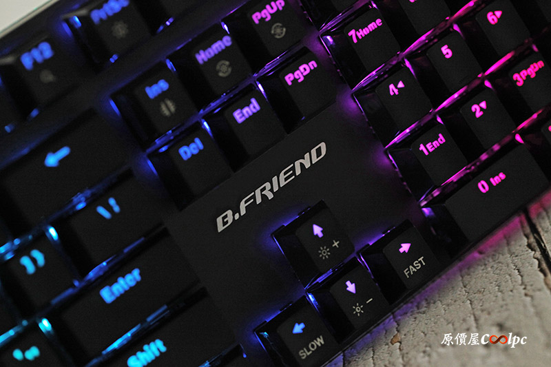 不過再低調鍵盤還是要有品牌的辨識度,所以可以看到方向鍵上方印有代表「B.FRIEND」的LOGO來作點綴。