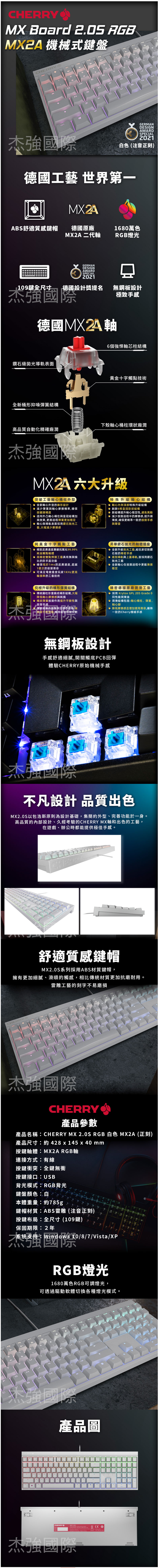 .Cherry Mx Board 2.0S RGB Mx2a 白色 茶軸/中文 $2490↘$2090