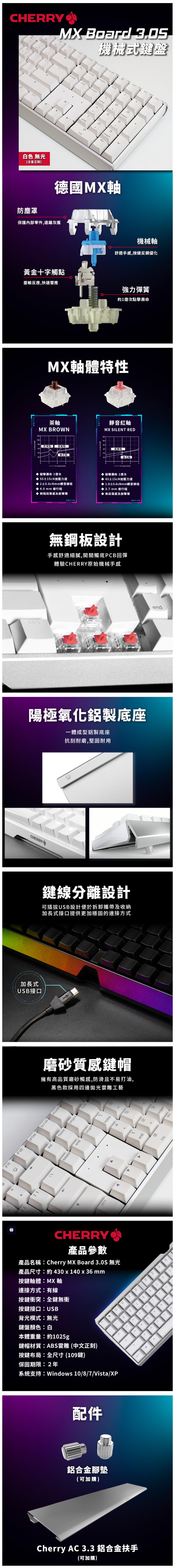.Cherry Mx Board 3.0S Mx2a 機械式鍵盤 白 靜音紅軸/中文 $2490↘$1890