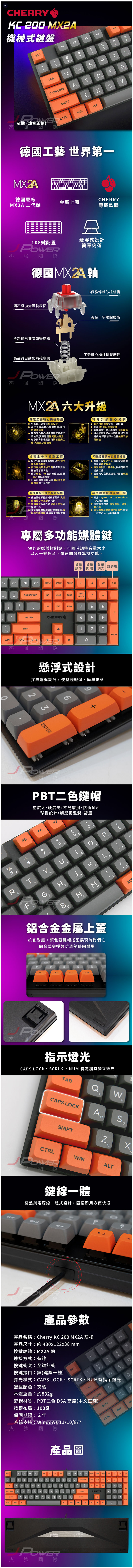 .Cherry Kc-200 Mx2a 機械式鍵盤 灰橘/靜音紅軸/中文 $2490↘$1990