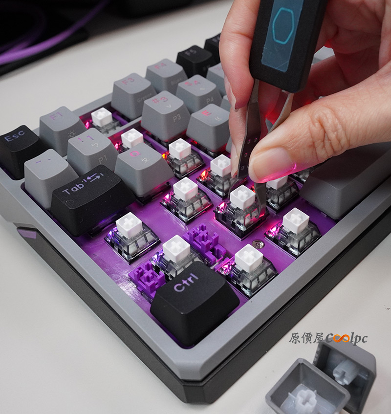 附帶的配件中是 CHERRY MX 綠軸,應該是刻意讓玩家知道,插拔座的兼容性很高,大部分的軸體都符合可替換規格。