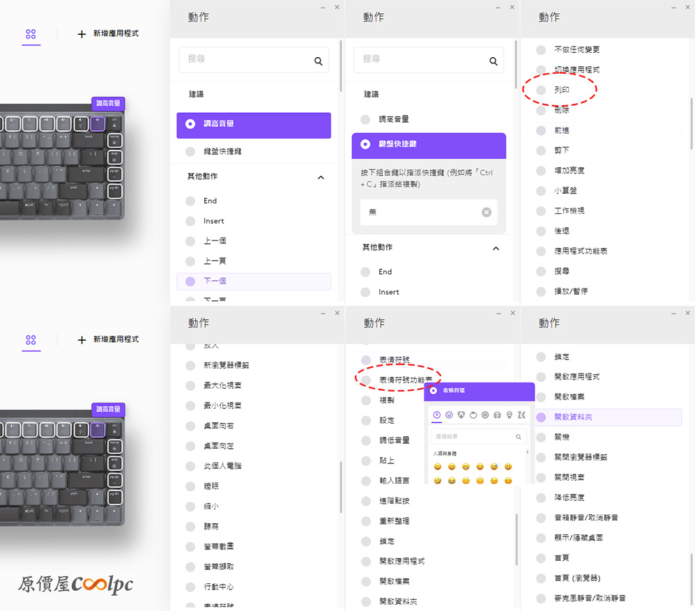 可以定義的按鍵相當豐富,你要的列印這邊也有,還有直接觸發表情符號呢…