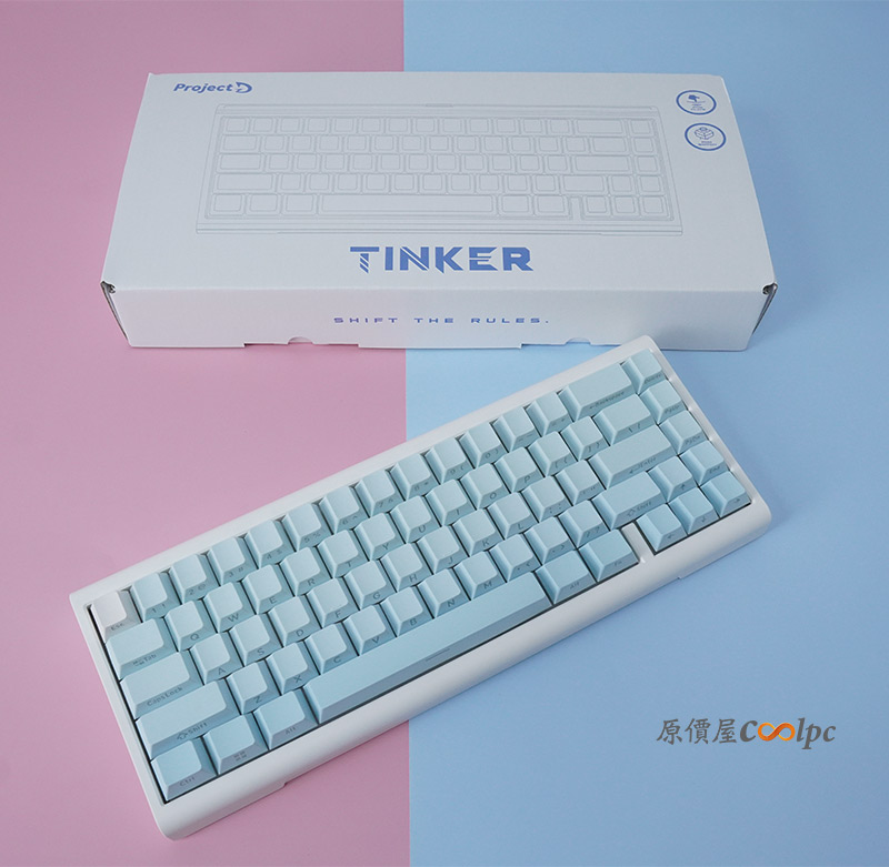 在Tinker 65的基礎上保留部分客製化的特點,將定位版更換為POM版,所有軸體也換成POM軸,從頭POM到尾,就是要給你絕佳的手感體驗! 搭配的淡藍色鍵帽,如雪一般透徹明亮,將字雕刻在側面,讓正面在視覺上乾淨整潔,在維持美觀的同時卻又不失其功能性!