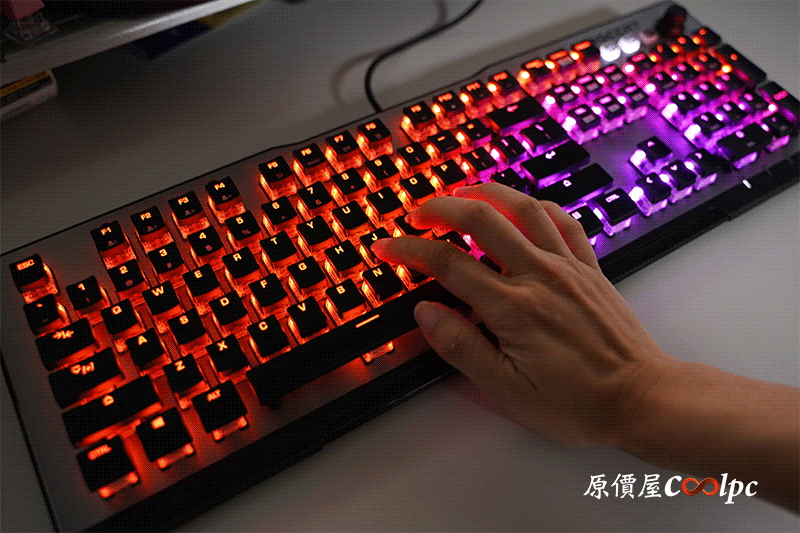 發光鍵盤-Roccat 自家的 AIMO 智慧發光系統超級美的呀!他會依照行為作出有機型態反應,雖然我還沒看出個所以然,不過倒是讓我如癡如醉的喜愛。有AIMO志會發光、波浪、蛇紋、全亮、心跳2.0、呼吸2.0、淡出特效、漣漪特效,以及當然可以自訂燈光囉!