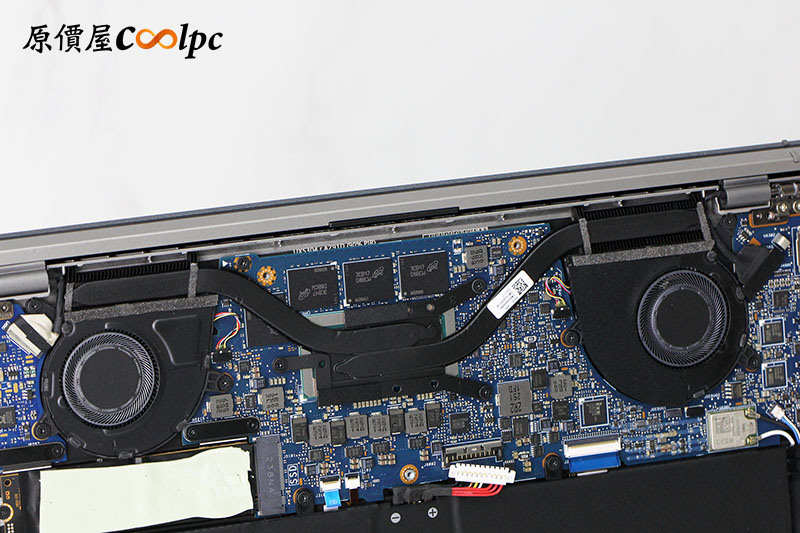 SSD 位於主機板左側,上面導熱貼片超黏,小心不要碰到。