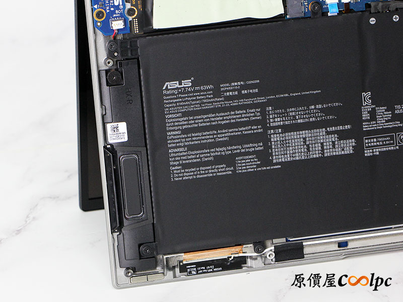 電池型號 C22N2206, +7.74V,63Wh , 7920mAh。