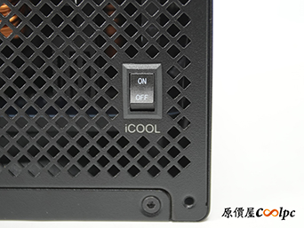(點小圖放大)電源後方有電源插孔、總開關,還有 iCool 智能風扇開關,開啟後在低負載時風扇會自動停轉,噪音就能降到最低唷。