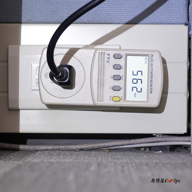 左邊的平台則是處理器使用Intel I7-6700K、華碩ROG MAXIMUS VIII Extreme主機板、金士頓Hyper X FURY DDR4-2666 16GB記憶體、金士頓 Hyper X Savage 240G SSD、NVIDIA RTX 2060顯示卡,右邊則是Intel I7-8700K、華碩ROG MAXIMUS X FORMULA主機板、金士頓Hyper X FURY DDR4-2666 16GB記憶體、EZLINK 500G SSD、MSI GTX1080顯示卡,兩平台同時使用AIDA64全滿載測試約30分鐘,使用變電家測量上數字為562Watt。