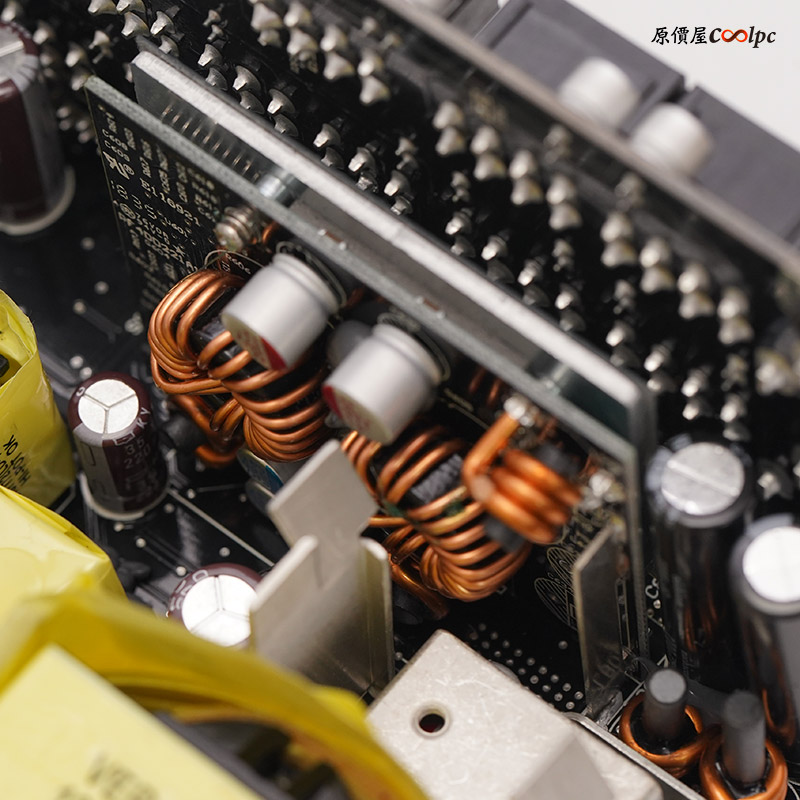 全模組化輸出電路板上配置數個固態電容來強化濾波,讓使用者有最乾淨、更穩定的供電品質喔。