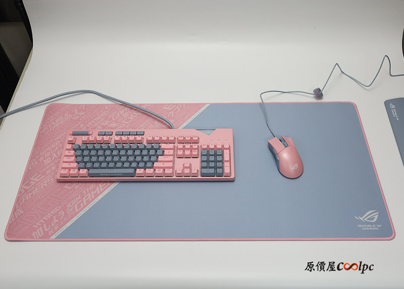 底下這張 ROG SHEATH PNK版鼠墊真的是設計得太好了!ROG圖騰、大半面PNK灰色視覺、粉色包邊。