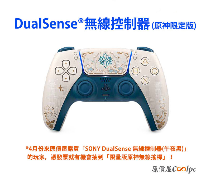 憑 4 月份購買「SONY DualSense 無線控制器(午夜黑)」的發票,有機會抽中「SONY DualSense 無線控制器(原神限量版)」!(僅 1 名 4 月底開獎!於原價屋 FB 粉絲團以及原活動文章公布)