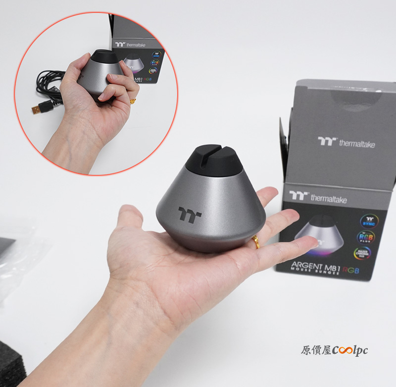【曜越 幻銀 ARGENT MB1 RGB 鼠線夾】同樣的竟然連顆數線夾都可以有燈光連動的作用。
